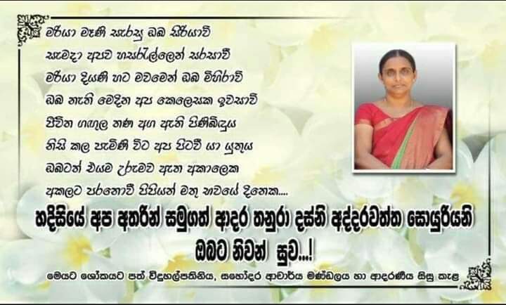 Words cannot express how indebted we are to you dear Mother Sandamali Kurera.